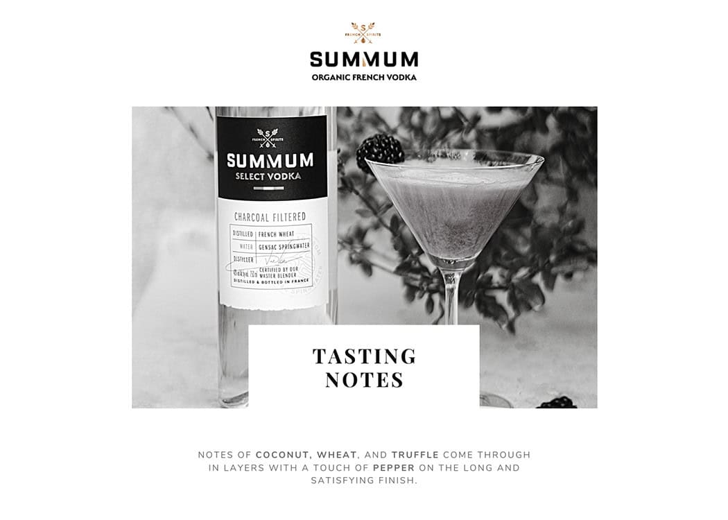 France- Additional filtrations make this offering rounder and more harmonious than original Summum. Notes of coconut, wheat, and truffle come through in layers with a touch of pepper on the long and satisfying finish. Gold Medal- San Francisco Spirits Competition.