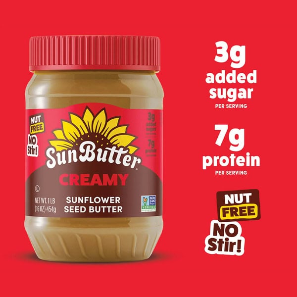 Smooth and oh-so-spreadable, our Creamy SunButter® is unforgettable! This nut-free spread is made from nutritious sunflower seeds, roasted to perfection to bring out their full rich & savory flavor.