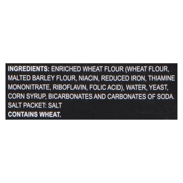 Enriched Wheat Flour (wheat Flour, Malted Barley Flour, Niacin, Reduced Iron, Thiamine Mononitrate, Riboflavin, Folic Acid), Water, Yeast, Corn Syrup, Bicarbonates And Carbonates Of Soda, Salt Packet: Salt