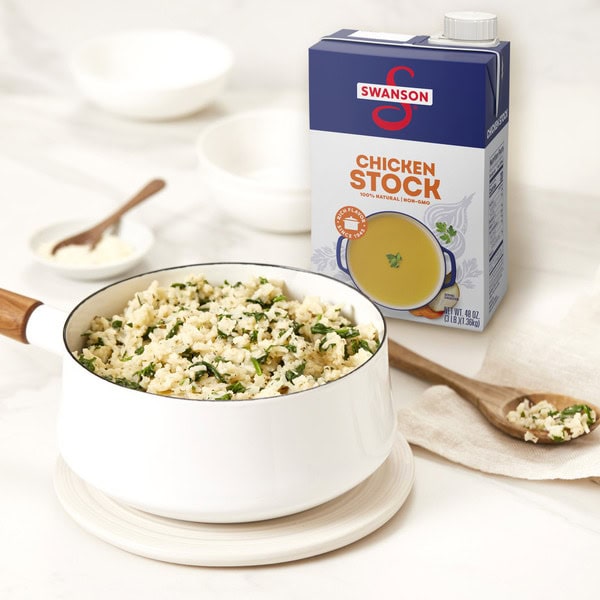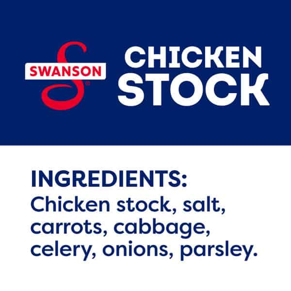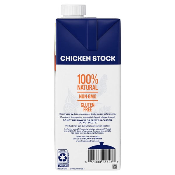 Elevate your homemade meals with the rich, full-bodied flavor of Swanson® 100% Natural Chicken Stock. Swanson® Chicken Stock brings together the perfectly balanced flavors of farm-raised chicken, vegetables picked at the peak of freshness, and simple seasonings in a convenient recyclable carton. And just like homemade, our chicken stock uses only 100% natural, non-GMO ingredients, with no MSG added, no artificial flavors or colors, and no preservatives. More convenient than chicken bouillon, this fat-free, gluten-free chicken stock is a versatile ingredient for your everyday cooking, adding flavor and moisture to both entrees and side dishes. Chicken stock has an even richer flavor and a heavier texture than chicken broth, with simple seasonings so you can adjust your finished dish to taste. It’s great for adding body to sauces and gravies and for deglazing the pan after browning chicken. Swanson® Chicken Stock is a must-have for your holiday cooking, bringing richer, elevated homemade flavor to chicken, turkey, ham and more. It’s not just any stock. It’s Swanson®.