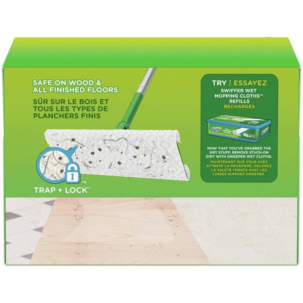 Swiffer Sweeper Multi-Surface dry sweeping cloth refills have deep textured ridges that TRAP + LOCK dirt, dust, hair & allergens* to keep your floors clean and free of debris. Use with Swiffer Sweeper, Swiffer Sweep+Vac and Swiffer Sweep+ Trap. *common inanimate allergens from cat and dog dander & dust mite matter