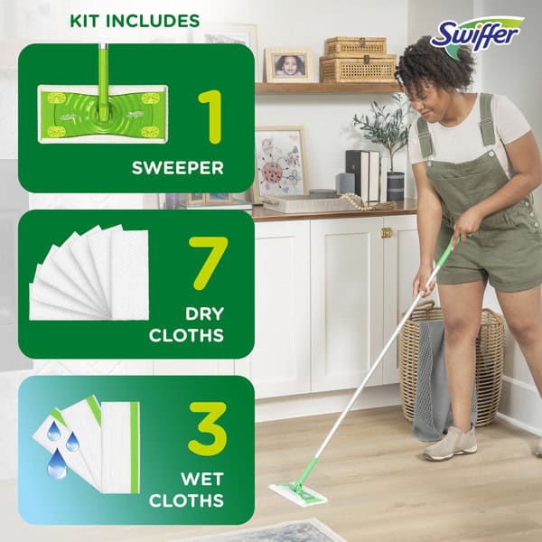 • Starter Kit includes 1 Sweeper, 7 Dry Sweeping Cloths, 3 Wet Mopping Cloths