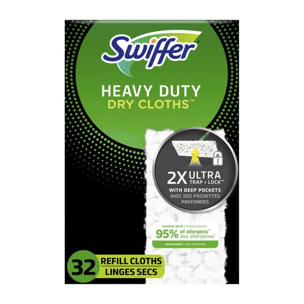 Swiffer Sweeper Heavy Duty Multi-Surface Dry Sweeping Cloths remove up to 95% of allergens* and TRAP + LOCK 2X more dirt, dust, and hair**, allowing you to clean all your hard floor surfaces quickly and easily. Use with your Swiffer Sweeper Dust Mop – the convenient combination of a broom and mop for a quick and easy clean. *Common inanimate allergens from cat and dog dander & dust mite matter **vs. Multi-Surface Swiffer Sweeper Dry Cloth
