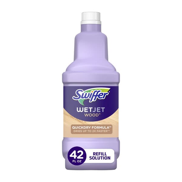 Swiffer WetJet Multi-Surface Floor Cleaner is a pre-mixed cleaning solution made specially for the Swiffer WetJet spray mop. The safe*, fast drying formula dissolves dirt and tough, sticky messes to reveal the natural beauty of your floors.*Safe on wood, do not use on unfinished, oiled or waxed wooden boards, non-sealed tiles or carpeted floors because they may be water sensitive