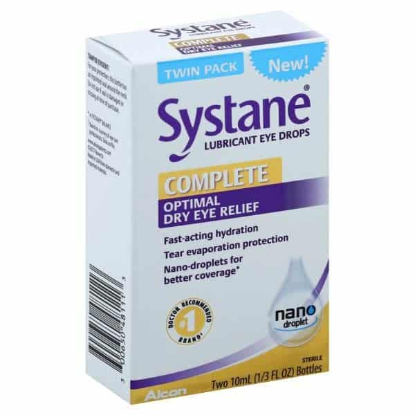 Other Information: Store at room temperature. Misc: Complete optimal dry eye relief. Fast-acting hydration. Tear evaporation protection. Nano-droplets for better coverage (Vs Systane balance). Nano droplet. Sterile. New! No.1 brand (Based on a survey of eye care professionals. Data on file) doctor recommended. Systane Complete our most advanced formula ever! Systane Complete lubricant eye drops hydrates fast, protects against tear evaporation, and helps support all layers of the tear film. Nano droplet technology: a better delivery of the active ingredient; better eye coverage (Vs Systane balance). www.alconpatents.com. Questions? In the US call 1-800-757-9195. alcon.medinfo(at)alcon.com. www.systane.com. Made in USA from domestic and imported materials.