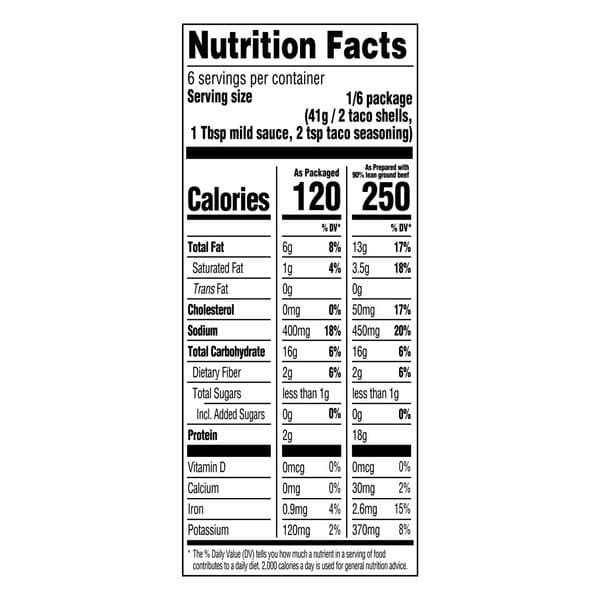 • Our easy-to-make dinner meal kit contains 12 crunchy corn taco shells, Taco Bell Mild Sauce and taco seasoning