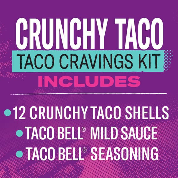• One 8.85 oz Taco Bell Crunchy Taco Cravings Kit with 12 Crunchy Taco Shells, Taco Bell Mild Sauce & Seasoning