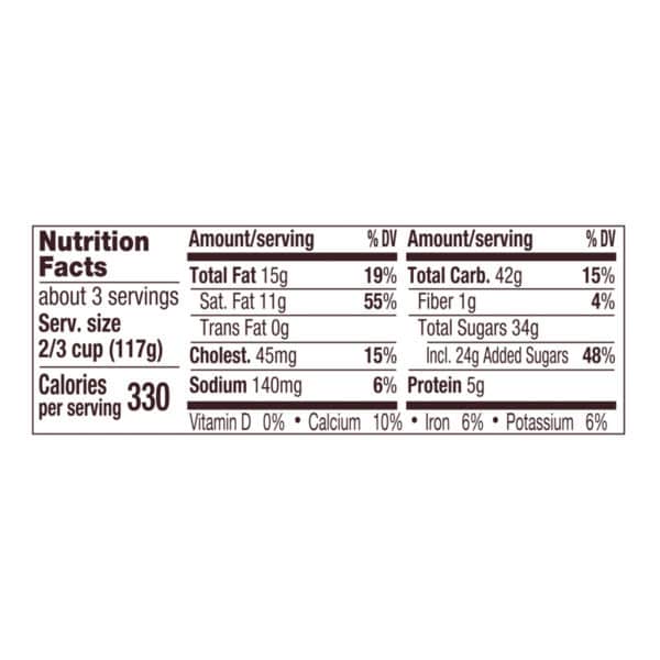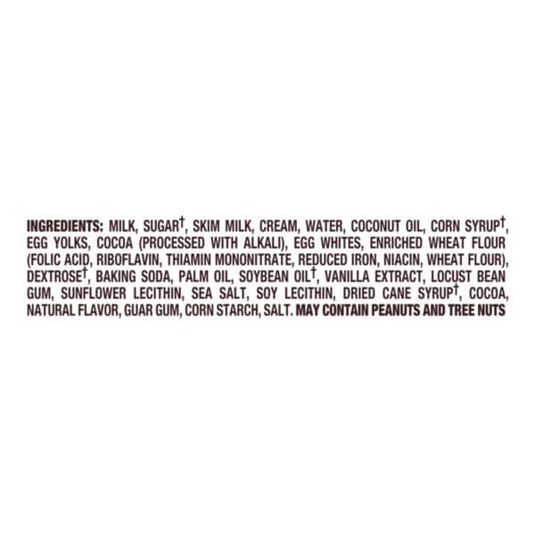 Milk, Sugar†, Skim Milk, Cream, Water, Coconut Oil, Corn Syrup†, Egg Yolks, Cocoa (processed With Alkali), Egg Whites, Enriched Wheat Flour (folic Acid, Riboflavin, Thiamin Mononitrate, Reduced Iron, Niacin, Wheat Flour), Dextrose†, Baking Soda, Palm Oil, Soybean Oil†, Vanilla Extract, Locust Bean Gum, Sunflower Lecithin, Sea Salt, Soy Lecithin, Dried Cane Syrup†, Cocoa, Natural Flavor, Guar Gum, Corn Starch, Salt, †non-gmo
