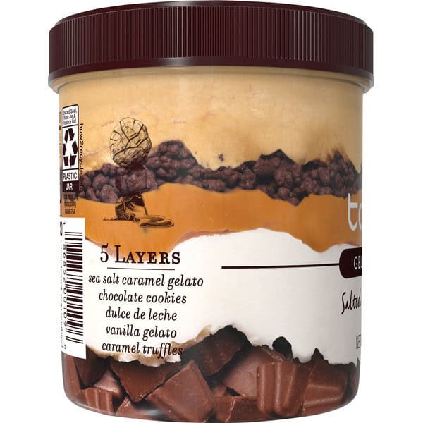If you’re looking for an indulgent treat, you’ve found the perfect frozen dessert. Talenti Salted Caramel Truffle Gelato Layers is our unique take on the classic sea salt caramel ice cream flavor. We started with a layer of our Sea Salt Caramel, added a layer of chocolatey cookies for a delicious crunch and created a third layer with our dulce de leche (think a rich, delicious caramel sauce), added vanilla gelato and finally finished with a fifth layer of chocolatey caramel truffles. At Talenti, we believe the best process and ingredients result in delicious gelato and sorbetto. That’s why we source the highest-quality ingredients from all around the world. Then, we package our products in clear, BPA-free jars that can be recycled and reused any way you like. Please note that Talenti jars are not microwave or dishwasher safe. (For clever reuse ideas, check out #Pintcycling on Instagram). In addition to Talenti Gelato, Talenti has Dairy-Free Sorbettos, Organic Gelato and Gelato Layers — 5 layers of the ultimate indulgence. All our products are made with non-GMO sourced ingredients which have been evaluated by Where Food Comes From, Inc., and adhere to our Non-GMO Sourced Standards. Try all our flavors and discover what makes Talenti so special.