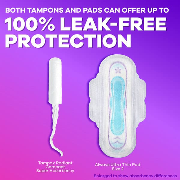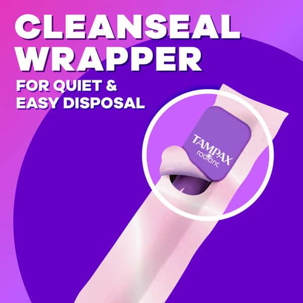 • TAMPAX COMPACT RADIANT TAMPONS provide up to 100% leak and odor-free period protection