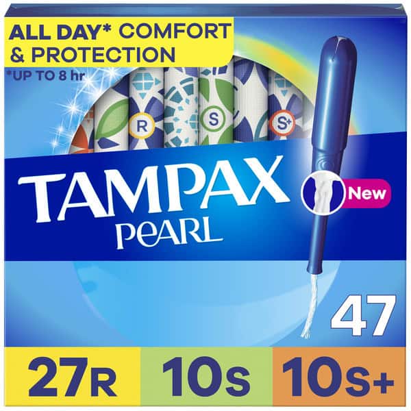 Say goodbye to leak checks and hello to worry-free periods with Tampax Pearl – the ultimate tampon for a no-see no-feel* period experience. Only Tampax has a LeakGuard braid that helps stop leaks before they happen. Plus, Tampax gently expands to fit your unique shape. Inserting Tampax Pearl tampons is made easy thanks to the applicator’s Anti-Slip Grip. Get all day comfort and protection for up to eight hours with Tampax Pearl tampons. Choose from five different absorbencies to match your changing flow. Got leaks? Go up an absorbency. Uncomfortable to remove? Go down an absorbency. Tampax Pearl Tampons have a smooth comfort layer for easy removal, even on your light days. How to insert a tampon: Slowly insert the tampon applicator from the tip, all the way to the grip. After you’ve pushed the plunger in all the way, pull the applicator out. How to remove a tampon: You’ll use your thumb and finger to grip the string and pull it slowly out. Properly dispose of your tampon in the trash. Tampax Tampons are made without perfume and latex. Plus, Tampax products are OEKO TEX standard 100 certified, meaning they are tested for up to 1,000 harmful substances.** Ready to ditch the leaks? Get amazing protection with Tampax, the #1 tampon brand recommended by U.S. Gynecologist.*** Discover your perfect flow combo and get the protection you need. (*when inserted correctly ***Certificate #24.HUS.14474 ***based on 2024 survey)