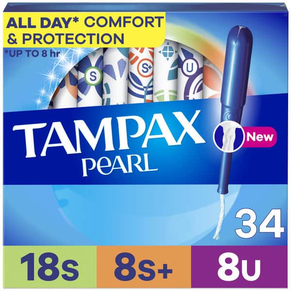 Say goodbye to leak checks and hello to worry-free periods with Tampax Pearl – the ultimate tampon for a no-see no-feel* period experience. Only Tampax has a LeakGuard braid that helps stop leaks before they happen. Plus, Tampax gently expands to fit your unique shape. Inserting Tampax Pearl tampons is made easy thanks to the applicator’s Anti-Slip Grip. Get all day comfort and protection for up to eight hours with Tampax Pearl tampons. Choose from five different absorbencies to match your changing flow. Got leaks? Go up an absorbency. Uncomfortable to remove? Go down an absorbency. Tampax Pearl Tampons have a smooth comfort layer for easy removal, even on your light days. How to insert a tampon: Slowly insert the tampon applicator from the tip, all the way to the grip. After you’ve pushed the plunger in all the way, pull the applicator out. How to remove a tampon: You’ll use your thumb and finger to grip the string and pull it slowly out. Properly dispose of your tampon in the trash. Tampax Tampons are made without perfume and latex. Plus, Tampax products are OEKO TEX standard 100 certified, meaning they are tested for up to 1,000 harmful substances.** Ready to ditch the leaks? Get amazing protection with Tampax, the #1 tampon brand recommended by U.S. Gynecologist.*** Discover your perfect flow combo and get the protection you need. (*when inserted correctly ***Certificate #24.HUS.14474 ***based on 2024 survey)