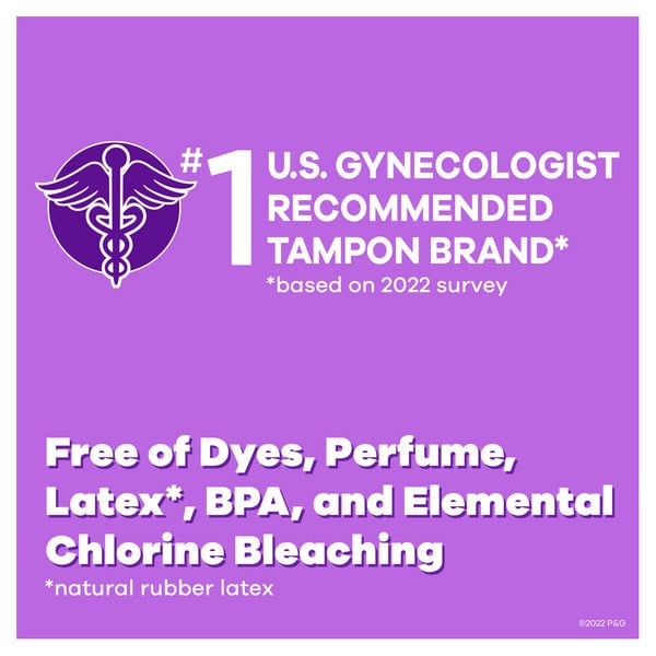 • #1 U.S. Gynecologist recommended tampon brand* *based on 2022 survey