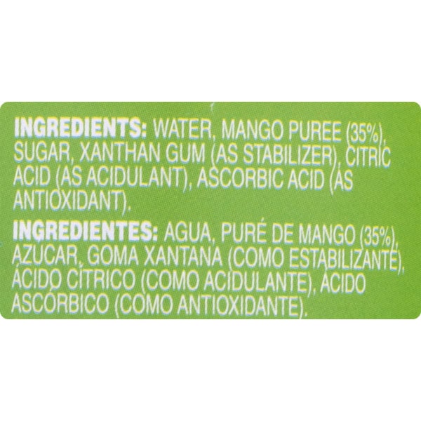 IngredientsWater, Mango Puree, Sugar, Xanthan Gum, Cmc, Citric Acid And Ascorbic Acid.