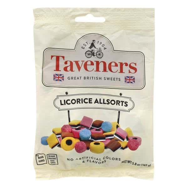 Assorted licorice and coconut sweets and round jelly buttons. No artificial colors & flavors. Non GMO (Not bioengineered). Est. 1904. Great British sweets. No high fructose corn syrup. Assortment may vary. www.tangerineuk.net. Dispose of properly. Produced by Tangerine Confectionery in the UK.
