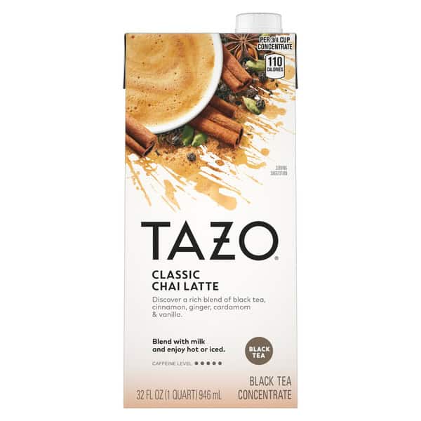 Delight Your Tastebuds With A Warming Combination Of Spices, Masterfully Blended To Perfection. Made With Real Brewed Black Tea, Tazo Classic Chai Latte Black Tea Concentrate Has A Deliciously Vibrant Flavor. Ginger Adds A Touch Of Warmth And Exhilarating Spice; Cardamom Is Intensely Aromatic And Adds A Dash Of Heat; And Cinnamon Adds Warmth And Spice Nestled Into A Toasty Aroma. Not Only Is It Tasty, Tazo Classic Chai Latte Black Tea Concentrate Makes It Easy For You To Be Your Own Barista With CafĂ©-Quality Drinks In The Comfort Of Your Home. By Simply Mixing Your Favorite Milk To The Chai Concentrate In A 1-To-1 Ratio, You Can Relax And Enjoy This Caffeinated Blend Hot Or Cold. Savor This Delicious Chai Latte With Peace Of Mind Knowing It’S Made From Kosher Certified Ingredients With No Artificial Sweeteners, No Artificial Flavors, And No Artificial Colors. Our Tazo Classic Chai Black Tea Latte Is The Warmest Result Of All Our Tireless Quests For The Best-Tasting Teas And Richest Spices From Around The World. Pour Yourself A Cup And Try For Yourself.