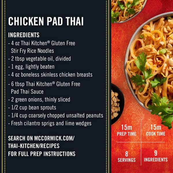 With Thai Kitchen Gluten Free Stir Fry Rice Noodles, you can finally make delicious, Thai-inspired dishes right at home! Just toss them with your favorite sauce or stir-fry them with any meat or vegetable for a quick and delicious meal. Easy to cook, our rice noodles will add the traditional Asian stir-fry taste and texture you’ve been craving. Gluten free and vegan, our noodles are steamed, not fried. Bring Thai-inspired flavor home with Thai Kitchen coconut milks, noodles, sauces, pastes and more from. Endless meals are waiting to be made, and they all start right here.