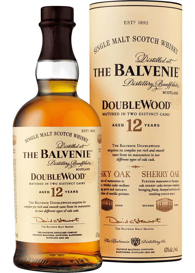 Scotland – Speyside – 43.000% – The Balvenie DoubleWood Speyside is a single malt whisky with a smooth mellow taste with nutty sweetness, cinnamon spiciness and a layer of sherry. San Francisco World Spirits Competition Gold 2024, International Spirits Challenge Gold 2023