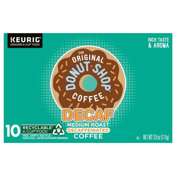 Before coffee was complicated, great coffee was simply fresh, bold, and flavorful. The Original Donut Shop Decaf single serve K-Cup pods bring back the classic donut companion in decaf, with this ideally balanced brew of the highest quality Arabica beans…dunking is encouraged. Full-flavored and easy going, this medium roast blend embodies one of the best things in life – simply great coffee, without the caffeine. These single-serve K-Cup pods are compatible with all Keurig K-Cup Pod Single-Serve Coffee Makers and brew up to 12 oz. of The Original Donut Shop Decaf coffee each. Each K-Cup pod is filled with the freshest decaffeinated ground coffee and brews a perfect, great tasting cup of coffee, every time. Certified Orthodox Union Kosher and contains no artificial ingredients.