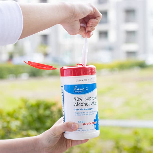 Prevent infection with 70% Isopropyl Alcohol Wipes from The Pharma-C Company. Featuring convenient, durable sheets that have been pre-moistened with a 70% isopropyl alcohol solution, this first aid kit must-have helps reduce the risk of infection in minor cuts, scrapes and burns.