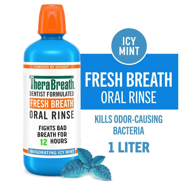 Bad breath is nothing to be ashamed of…everyone gets it! ADA accepted TheraBreath Fresh Breath Mouthwash has been fighting bad breath for over 25 years. When used as directed, it’s clinically shown to fight bad breath for 24 hours when used every 12 hours after brushing and flossing. This alcohol-free mouthwash doesn’t burn or irritate, and the oxygenating compound that fights bad breath starts working instantly. TheraBreath Icy Mint Mouthwash for Adults has no artificial dyes and is certified kosher, vegan, and gluten-free. We’re so confident in the effectiveness of TheraBreath Oral Rinses that we back them up with our 100% guarantee. If you haven’t seen improvement in your breath, contact us within 30 days of purchase for a full refund. TheraBreath: It’s a better mouthwash, satisfaction 100% guaranteed!