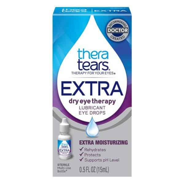 TheraTears EXTRA Dry Eye Therapy Lubricant Eye Drops provide EXTRAordinary relief. Discover one-of-a-kind silky hydration. TheraTears rehydrates dry eyes, protects against further irritation and supports a natural tear pH level. The unique formula contains the 5 vital electrolytes found in natural tears. As eyes become dry they lose water and become too salty, creating hyperosmolarity. TheraTears eye drops corrects the salt imbalance that can cause dry eye symptoms. Dr. Jeffrey P. Gilbard, Ophthalmologist created TheraTears eye drops after 18 years of research for dry eyes. To use, instill 1 or 2 drops in the affected eye(s) as needed. TheraTears eye drops are FSA- and HSA-eligible in the U.S. TheraTears provides dry eye therapy by restoring, cleansing and nourishing the eye. For adult use daily as needed.