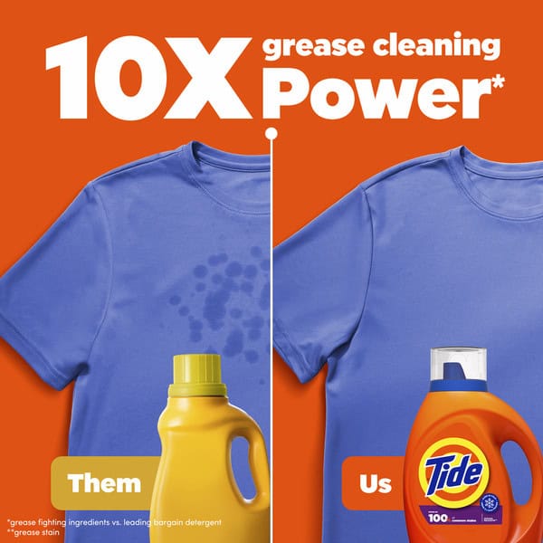 • 10X Grease Cleaning Power: More grease fighting ingredients than leading bargain laundry detergent