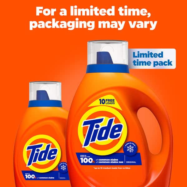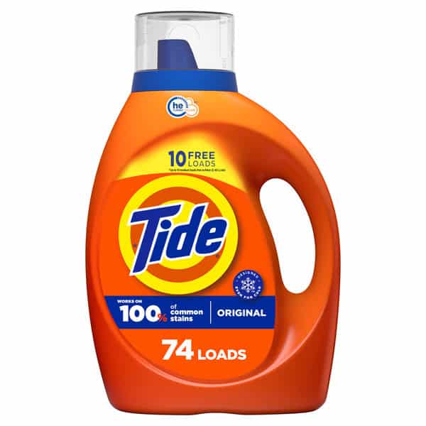 Face it, the world can be a really dirty place. In a world where common stains can be mere moments away, you need a clean that can stand up to them. When it comes to stains, you want a solution that you can trust in any circumstance. Tide Liquid Laundry Detergent will give you the Tide clean you love – every single time. A surprisingly powerful clean in one step-even in cold water and quick cycles. Tide Laundry Soap works on 100% of common stains, including grease stains, giving you the clean and freshness you know and love. When it comes to choosing a laundry detergent that works on all of life’s messes, don’t pay for water, pay for clean. Tide Liquid Laundry Detergent is America’s #1 trusted detergent brand** and is designed to work even in cold water, delivering outstanding performance every time. Get a quality clean from your liquid laundry detergent. Tide laundry soap keeps your whites white and your colors colorful, infused with the Original Scent you love. Tide laundry detergent is easy to measure and easy to pour. If it’s clean, it’s got to be Tide. ** Voted most trusted laundry detergent brand by American shoppers based on the 2025 BrandSpark American trust survey.