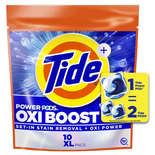 • Includes one 10 Count pack of Tide Oxi Boost Power PODS Laundry Detergent, Laundry Pods with Advanced Stain Remover plus Oxi Power