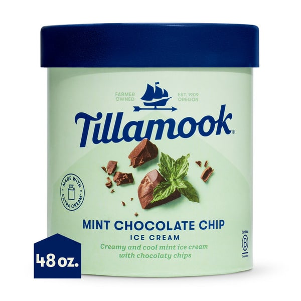 When you want the best-tasting version of classic mint chocolate chip ice cream, add Tillamook Mint Chocolate Chip Ice Cream to your cart. With the smooth, creamy texture of Tillamook Mint Ice Cream and chocolate chips, this simple, yet rich ice cream is one you won’t forget. Made with more cream than required and less air, Tillamook Ice Cream is creamier, smoother and richer for the most delicious spoonfuls. Enjoy it scooped in a bowl or as ice cream sundaes, chocolate chip mint ice cream sandwiches or mint chocolate ice cream cones. A perfect complement to brownies, cookies and cakes, this is an easy party food that is sure to be a crowd-pleaser. Or use your creativity and whip up unique frozen desserts, like a custom mint chocolate chip ice cream cake, that make your gatherings unforgettable. Pasteurized and naturally flavored, this premium ice cream has a real, unmatched taste because it’s made right. Tillamook Ice Cream uses high-quality milk from cows not treated with rBST*, cage-free eggs and no artificial flavors, artificial preservatives or bioengineered ingredients. As a Certified B Corp, Tillamook is committed to being good stewards of cows and farms, of people and products, their communities and the environment. With over 110 years of quality dairy experience backing them, this extra creamy Tillamook Ice Cream has a taste to remember. Do Right By Every Bite.