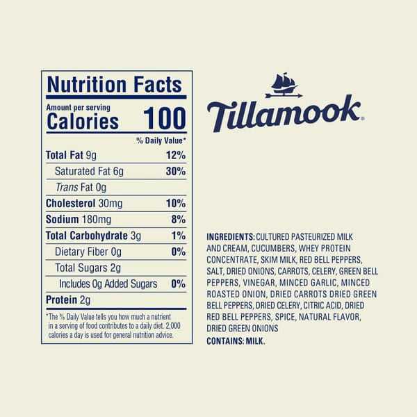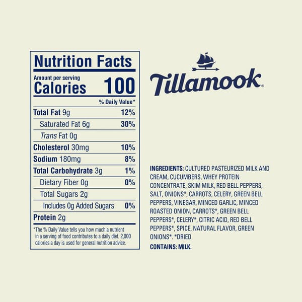 Cultured Pasteurized Milk And Cream, Cucumbers, Whey Protein Concentrate, Skim Milk, Red Bell Peppers, Salt, Onions*, Carrots, Celery, Green Bell Peppers, Vinegar, Minced Garlic, Minced Roasted Onion, Carrots*, Green Bell Peppers*, Celery*, Citric Acid, Red Bell Peppers*, Spice, Natural Flavor, Green Onions*.