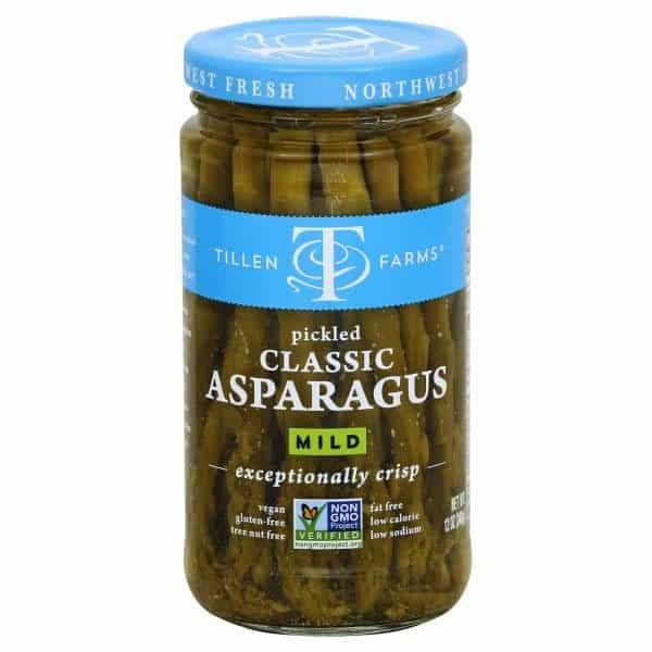 Exceptionally crisp. Vegan. Gluten-free. Tree nut free. Fat free. Low calorie. Low sodium. Non GMO Project verified. nongmoproject.org. Northwest fresh. Occasionally, you may notice a grey flecking on the asparagus. This is a perfectly edible pure protein which occurs naturally during the pickling process. Facebook. Twitter. Instagram. Pinterest. Tillenfarms.com. info(at)tillenfarms.com. Our Classic Asparagus are grown and locally processed in Washington States’ famed Yakima Valley. Picked at their peak of perfection during a short growing season, Tillen Farms Classic Asparagus are uniquely processed to maintain their exceptional crispiness and fresh from the field flavor. Hand picked & hand packed.