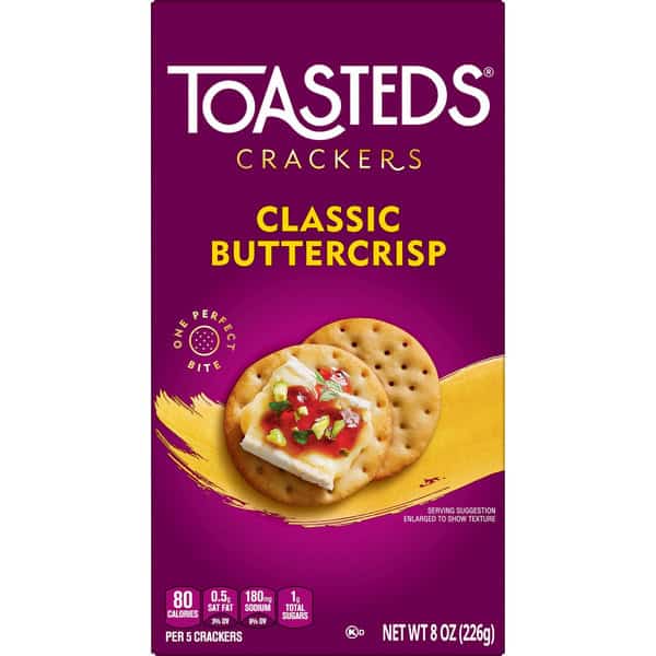 • Includes 1, 8oz box containing Toasteds Classic Buttercrisp crackers; Packaged for freshness and great taste