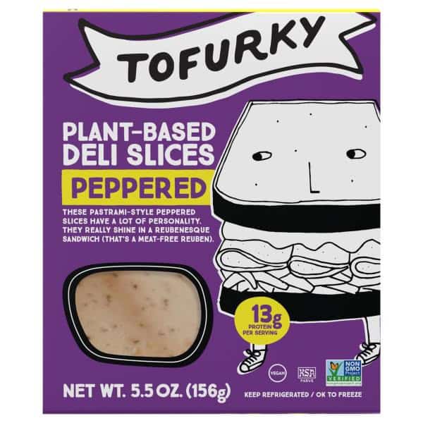 These pastrami-style peppered slices have a lot of personality. They really shine in a reubenesque sandwich (that’s a meat-free reuben).