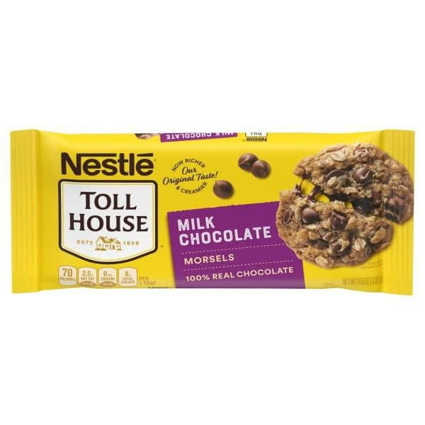 Nestle Toll House Milk Chocolate Morsels Are A Great Way To Add Sweet Chocolate Flavor To Your Favorite Summer Treats. These Milk Chocolate Chips Are Easy To Toss Into Dessert Mixes And Batters. Including These Milk Chocolate Chips Into Your Favorite Summer Recipes Delivers The Same Delicious Flavor That Nestle Toll House Cookies Are Known For. Nestle Toll House Milk Chocolate Morsels Are Gluten Free And Made With No Artificial Flavors, Colors, Or Preservatives. Toll House Chocolate Chips Are Made With 100% Real Chocolate, Delivering A Delicious Treat The Entire Family Will Love. Use The Toll House Chocolate Chips As A Sweet Addition To Frozen Treats, Cereal, Fruit Or Yogurt. Toll House Chocolate Chips Are Also Delicious To Snack On Or Add To Nut Mixes. Each Bag Contains 11.5 Oz Of Milk Chocolate Chips. Store Chocolate Morsels In A Cool, Dry Place.
