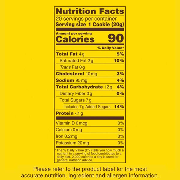 Baking Instructions: Directions developed using conventional ovens. Ovens vary; baking time may need to be adjusted. Preheat oven to 350 degrees F. Break along pre-scored lines. Place 10 cookies 2 inch apart on ungreased baking sheet(s). Bake 10-12 minutes or until golden brown. High Altitude: Bake at 350 degrees F 11-13 minutes. Dough may be frozen for up to 2 months if frozen before use by date on the package. Frozen dough can be baked in preheated oven. Simply add 1-2 minutes of bake time. Tips for Better Baking: For a rounder cookie, slightly round dough corners before placing on baking sheet. Bake one baking sheet at a time on center rack in oven. Begin with the lowest time recommended and add time as needed. After baking, cool cookies 2 minutes on baking sheet, remove to cool completely.