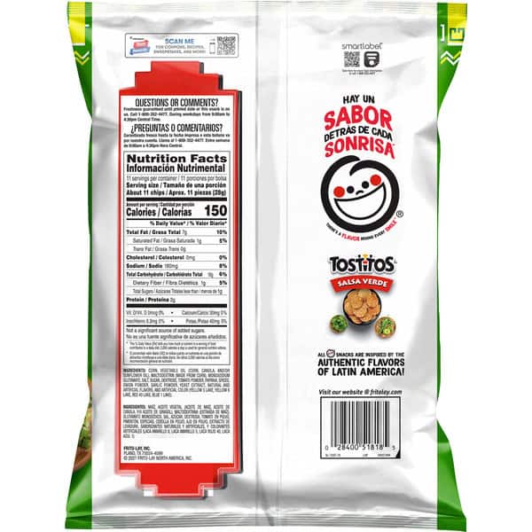 Tostitos Salsa Verde flavored corn tortilla chips are ideal for combining with different ingredients to prepare your favorite meal or snack. Your way!