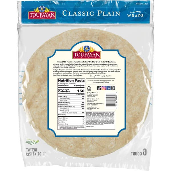 Enriched Wheat Flour (contains Niacin, Reduced Iron, Thiamine Mononitrate [vitamin B1], Riboflavin [vitamin B2], Folic Acid), Whole Wheat Flour, Water, Canola Oil, Salt, Contains 2% Or Less Of Baking Powder (sodium Bicarbonate, Sodium Aluminum Sulfate, Calcium Carbonate, Cornstarch, Monocalcium Phosphate), Cellulose Gum, Maltodextrin, Carrageenan, Mono And Diglycerides, Vinegar, Fumaric Acid, Potassium Sorbate (added To Maintain Freshness), Calcium Propionate (added To Maintain Freshness), L-cysteine, Ascorbic Acid, Rice Flour.