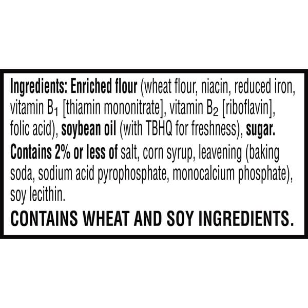 Enriched Flour (wheat Flour, Niacin, Reduced Iron, Vitamin B₁ [thiamin Mononitrate], Vitamin B₂ [riboflavin], Folic Acid), Soybean Oil (with Tbhq For Freshness), Sugar, Contains 2% Or Less Of Salt, Corn Syrup, Leavening (baking Soda, Sodium Acid Pyrophosphate, Monocalcium Phosphate), Soy Lecithin