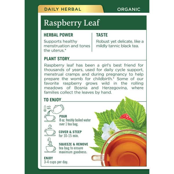 All Herbal Ingredients: Organic Raspberry Leaf (100% Fairwild Certified Ingredients by Dry Weight. www.fairwild.org).