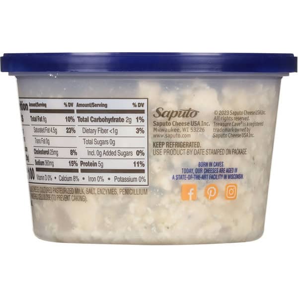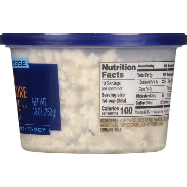 Blue Cheese (cultured Pasteurized Milk, Salt, Enzymes, Penicillium Roqueforti), Powdered Cellulose (to Prevent Caking)