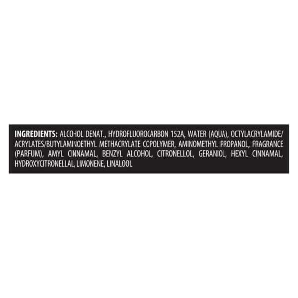 Sd Alcohol 40-b (alcohol Denat.), Hydrofluorocarbon 152a, Octylacrylamide/acrylates/butylaminoethyl Methacrylate Copolymer, Aminomethyl Propanol, Fragrance (parfum), Cyclotetrasiloxane, Cyclopentasiloxane.