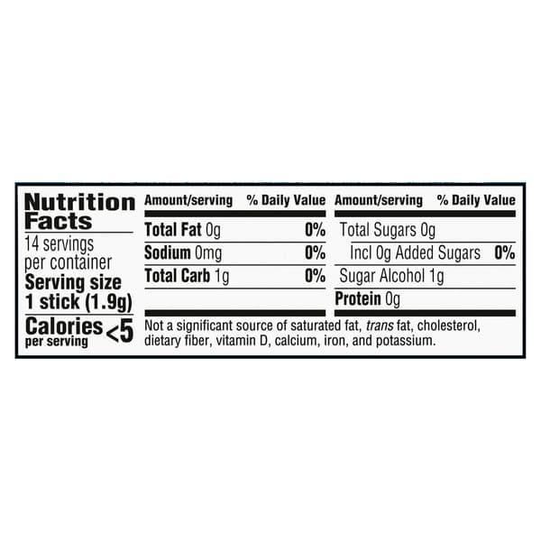 Sorbitol, Gum Base, Xylitol, Glycerin, Natural And Artificial Flavor; Less Than 2% Of: Acesulfame Potassium, Aspartame, Bht (to Maintain Freshness), Blue 2 Lake, Mannitol, Soy Lecithin, Sucralose.