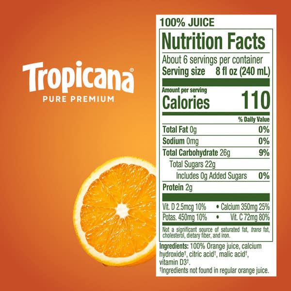 100% Orange Juice, Calcium Hydroxide†, Citric Acid†, Malic Acid†, Vitamin D3†, †ingredients Not Found In Regular Orange Juice
