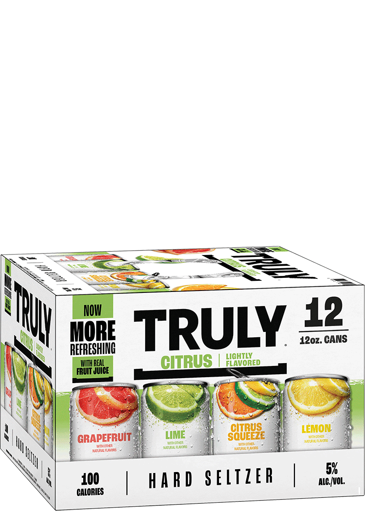 Massachusetts Variety Pack – Truly Hard Seltzer Citrus Mix Pack is a variety of refreshing alternatives to beer, wine and cocktails. Its crisp and clean like seltzer but with 5% Alcohol, only 100 calories and 1g sugars. 4 cans of each: Lime, Grapefruit, Lemon, and New Citrus Squeeze