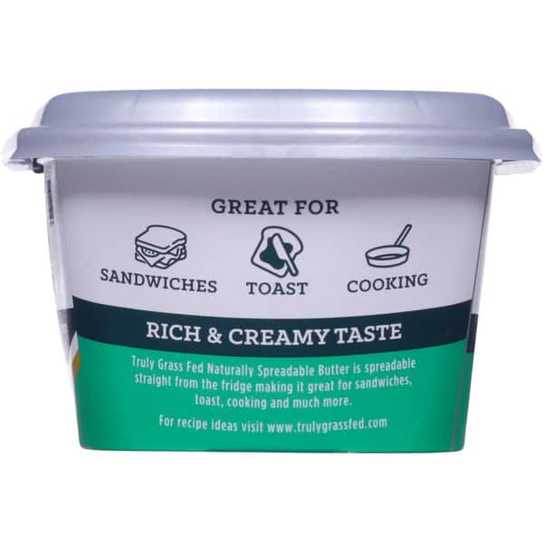 Great for sandwiches; toast; cooking. Rich & Creamy Taste: Truly Grass Fed Naturally Spreadable Butter is spreadable straight from the fridge making it great for sandwiches, toast, cooking, and much more.