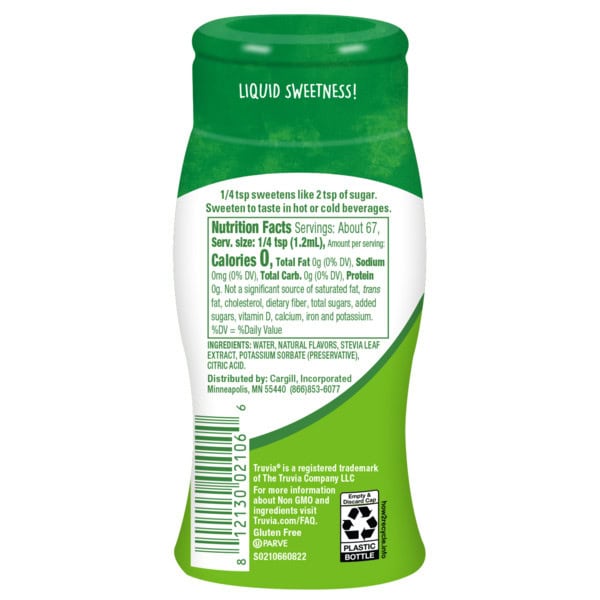 Sweetness is meant to be enjoyed. That’s why Truvia created products meant to reduce sugar, not taste. The sweet flavor contained in Truvia Liquid Stevia Sweetener comes from nature found in the stevia leaf. Leaves don’t dissolve well in beverages, so we extract the sweetness from the stevia leaf. The convenient 2.7 fluid ounce bottle is great both at-home or on-the-go. Try Truvia Calorie-free Liquid Stevia Sweetener in your coffee, tea, smoothies, cocktails, yogurt and in your favorite recipes.