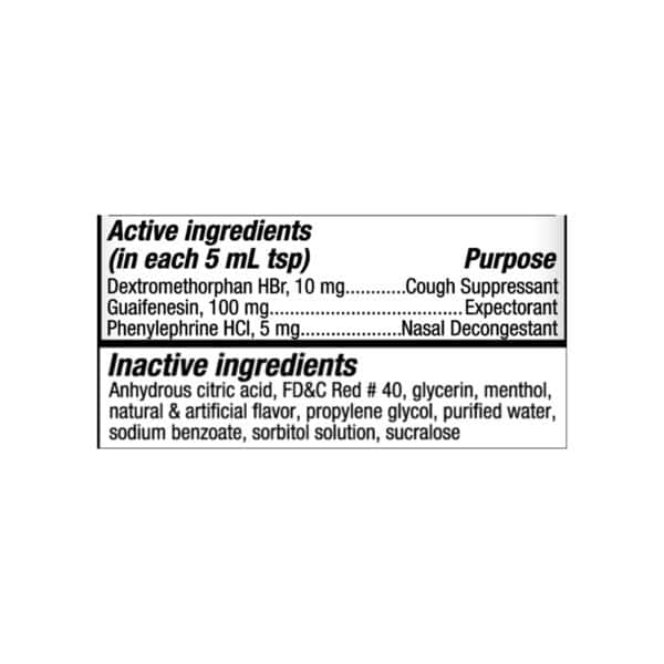 Inactive ingredients: Anhydrous citric acid, FD&C Red # 40, glycerin, menthol, natural & artificial flavor, propylene glycol, purified water, sodium benzoate, sorbitol solution, sucralose
