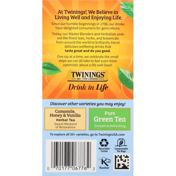 For over 300 years, Twinings has been sourcing and blending the finest, high-quality teas from around the globe to ensure that your tea has the perfect balance of tea taste, flavour and aroma. Twinings blends to perfection the finest herbs, fruits and spices to give you a line of great-tasting herbal teas with mouth-watering flavours, fresh tastes and irresistable aromas. Whatever your mood—there’s a blend for every occasion.