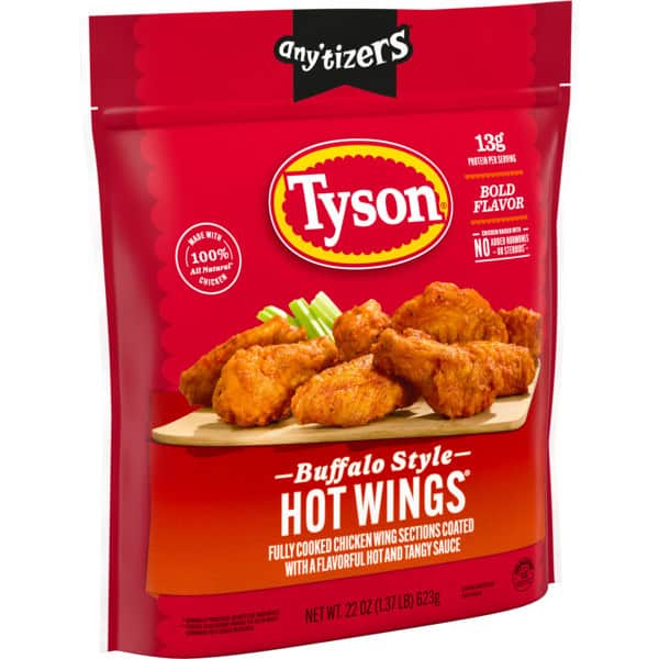 Tyson Any’tizers Frozen Buffalo Style Hot Wings are a great way to add some bold flavor to your day. Our wings are fully cooked 100% all natural* chicken that is easy to make and enjoy. Perfect for a party, game day or as an addition to a meal, our Buffalo style hot wings bring the flavor with a hot and tangy sauce coating. Whether enjoying as an appetizer or a snack, our chicken wings have no added hormones or steroids** and have 13g of protein per serving. Keep frozen until ready to prepare, then pop them in an air fryer or oven for delicious Buffalo style hot wings. *Minimally processed, no artificial ingredients **Federal regulations prohibit the use of added hormones or steroids in chicken